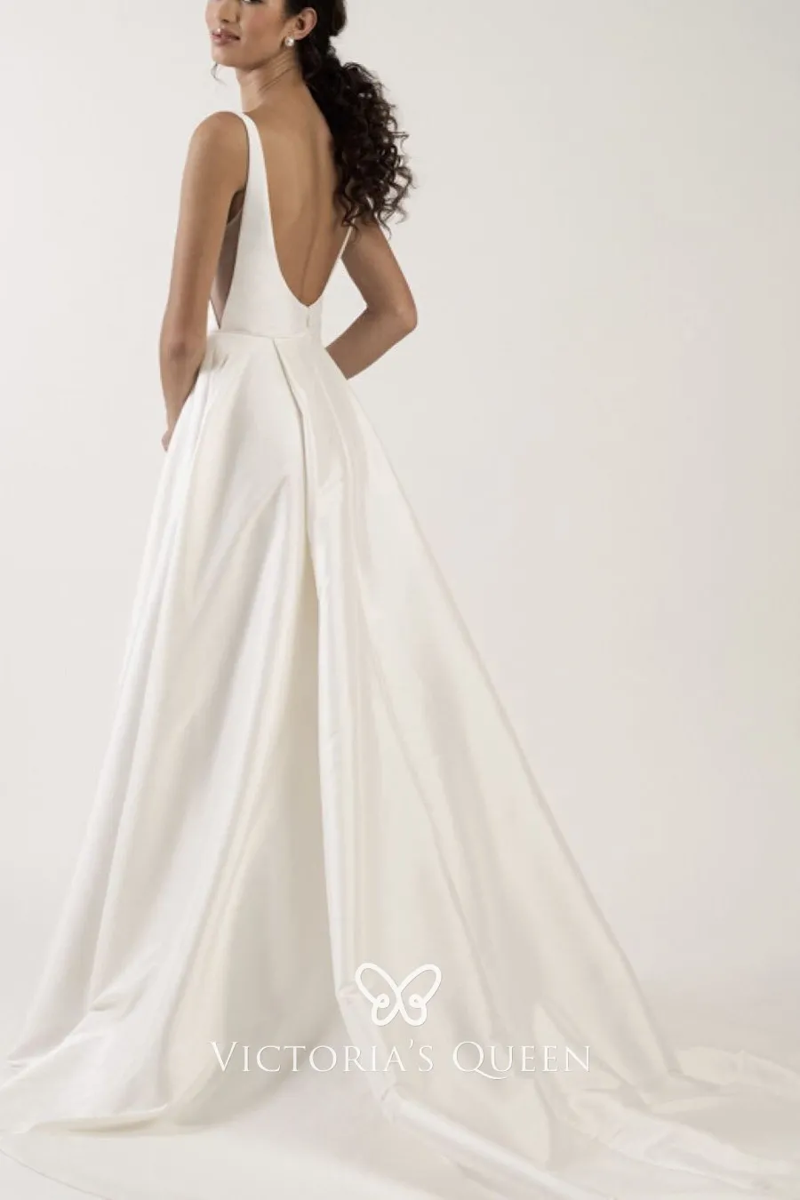 Minimalist Ivory Satin Square Neck A Line Wedding Dress Vq